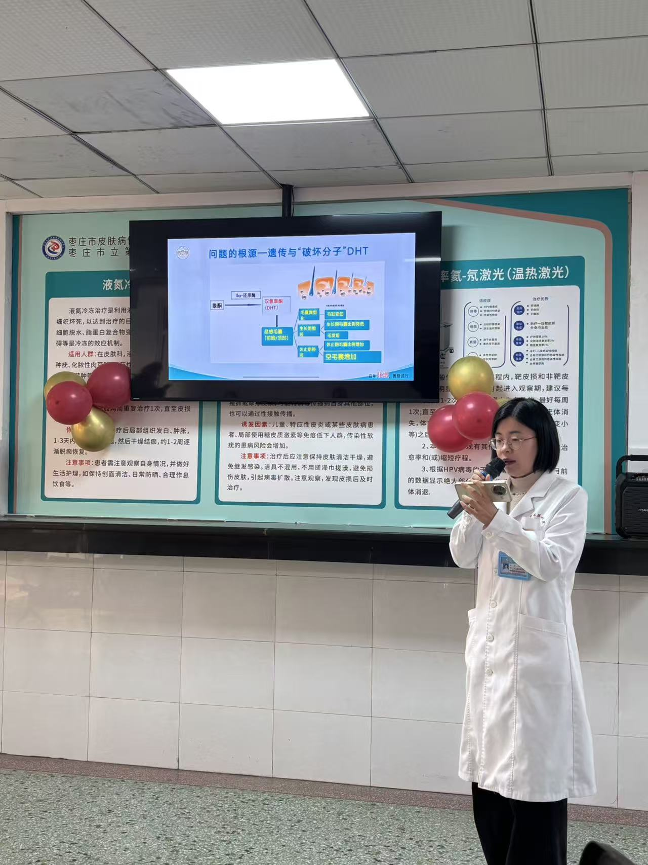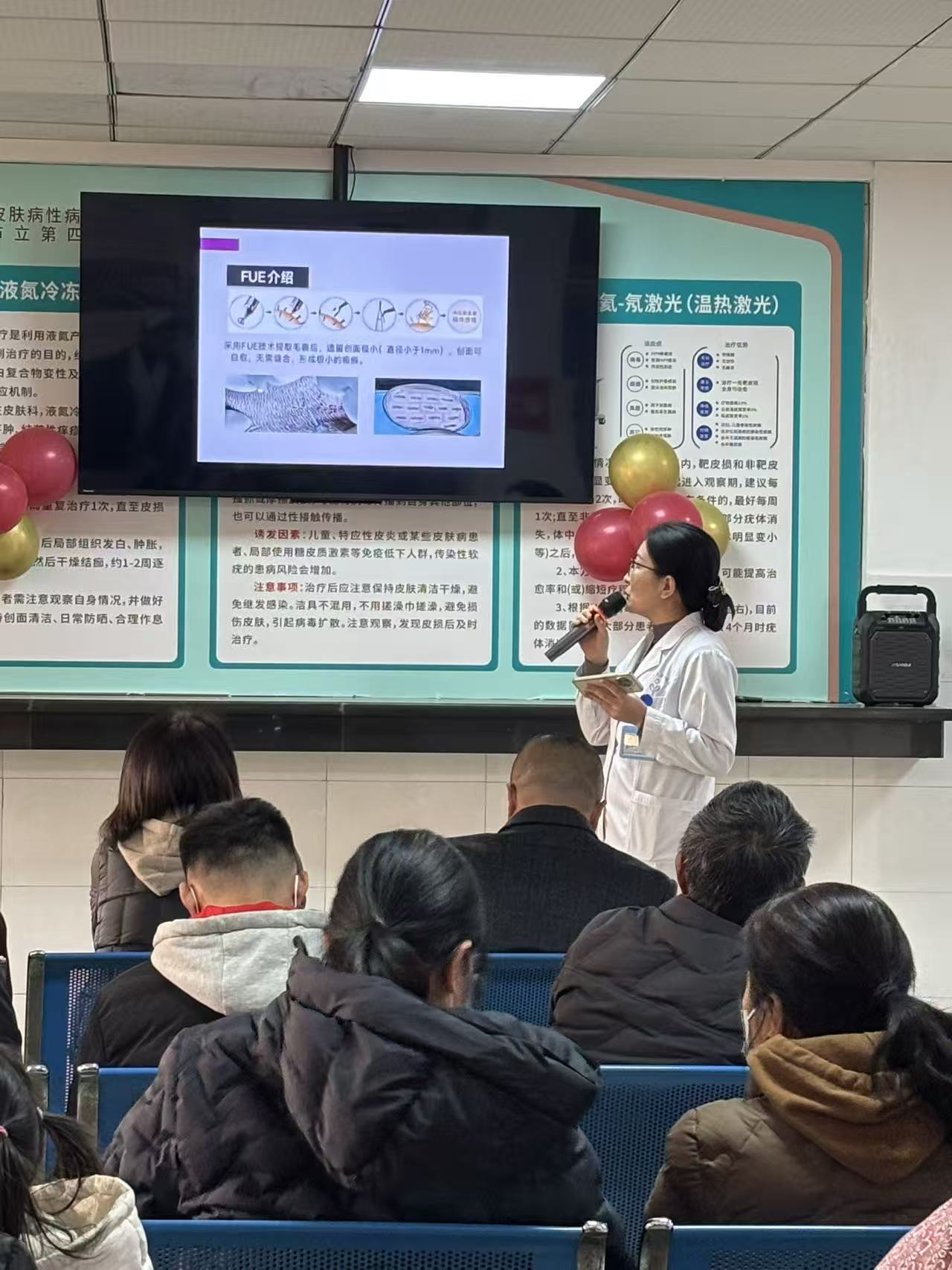 慶典的重頭戲?yàn)槊l(fā)健康知識(shí)科普環(huán)節(jié)。皮膚科主任邱盼盼首先登臺(tái),結(jié)合其豐富的臨床經(jīng)驗(yàn),系統(tǒng)講解了各型斑禿、雄激素性脫發(fā)及女性脫發(fā)等常見疾病的診療要點(diǎn)。她以淺顯易懂的方式剖析毛發(fā)生長(zhǎng)機(jī)理,并指出“頭皮健康是毛發(fā)問(wèn)題的核心反映”,強(qiáng)調(diào)日常護(hù)理的科學(xué)性與個(gè)性化重要性。