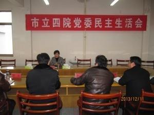 12月24日上午,棗莊市立四院黨委召開(kāi)了2013年度民主生活會(huì)。本次民主生活會(huì)以“為民務(wù)實(shí)清廉”為主題,以“反對(duì)‘四風(fēng)’,服務(wù)群眾”為重點(diǎn)。我院領(lǐng)導(dǎo)班子全體成員參會(huì),滕州市墨子研究中心主任邵長(zhǎng)婕蒞臨指導(dǎo)。會(huì)議由黨委書(shū)記李懷章主持。為高質(zhì)量高標(biāo)準(zhǔn)開(kāi)展好此次民主生活會(huì),院領(lǐng)導(dǎo)高度重視,認(rèn)真做好會(huì)前各項(xiàng)準(zhǔn)備工作。制定了民主生活會(huì)實(shí)施方案,通過(guò)集中學(xué)習(xí)、廣泛征求意見(jiàn)、班子成員談心等形式,收集對(duì)領(lǐng)導(dǎo)班子的意見(jiàn)建議10...
